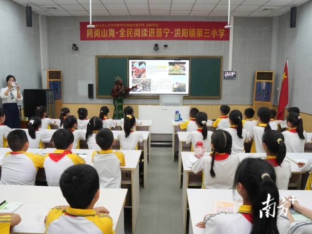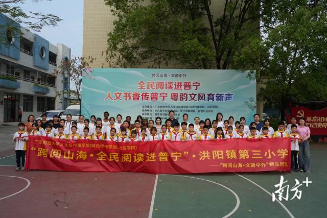活动期间,新世纪出版社向洪阳镇第三小学师生捐赠《童说岭南》系列丛书图书,共建 “跨阅山海图书馆”;广财的中外师生围绕岭南生活、各国民俗风物、饮食传统等话题与孩子们进行诗歌学习、朗诵训练、讲座分享……这群特殊的客人,让乡村里的孩子们看到,阅读的形态可以如此多样。