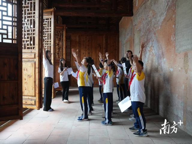这场阅读活动的重头戏是中外学生共同排练、朗诵诗歌《非遗中的岭南》。这是广财学生们原创的诗歌,朗诵地点位于洪阳镇西村的普宁学宫。据介绍,普宁学宫曾是专门供奉至圣先师孔夫子的庙堂,还曾被设为县立第一中学。如今,它已被列为广东省文物保护单位。
