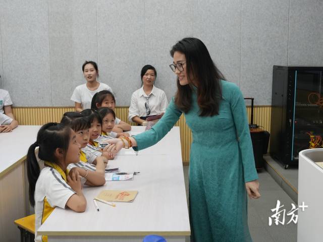 “我身上穿的是越南的传统服饰,叫作奥黛。”来自越南的莫氏蓉(MAC THI DUNG)站在教室里,向孩子们介绍道。当天,不少留学生特意穿上自己国家的民族服饰走进校园,孩子们好奇地打量着这些不同国家、肤色和着装的外国人。