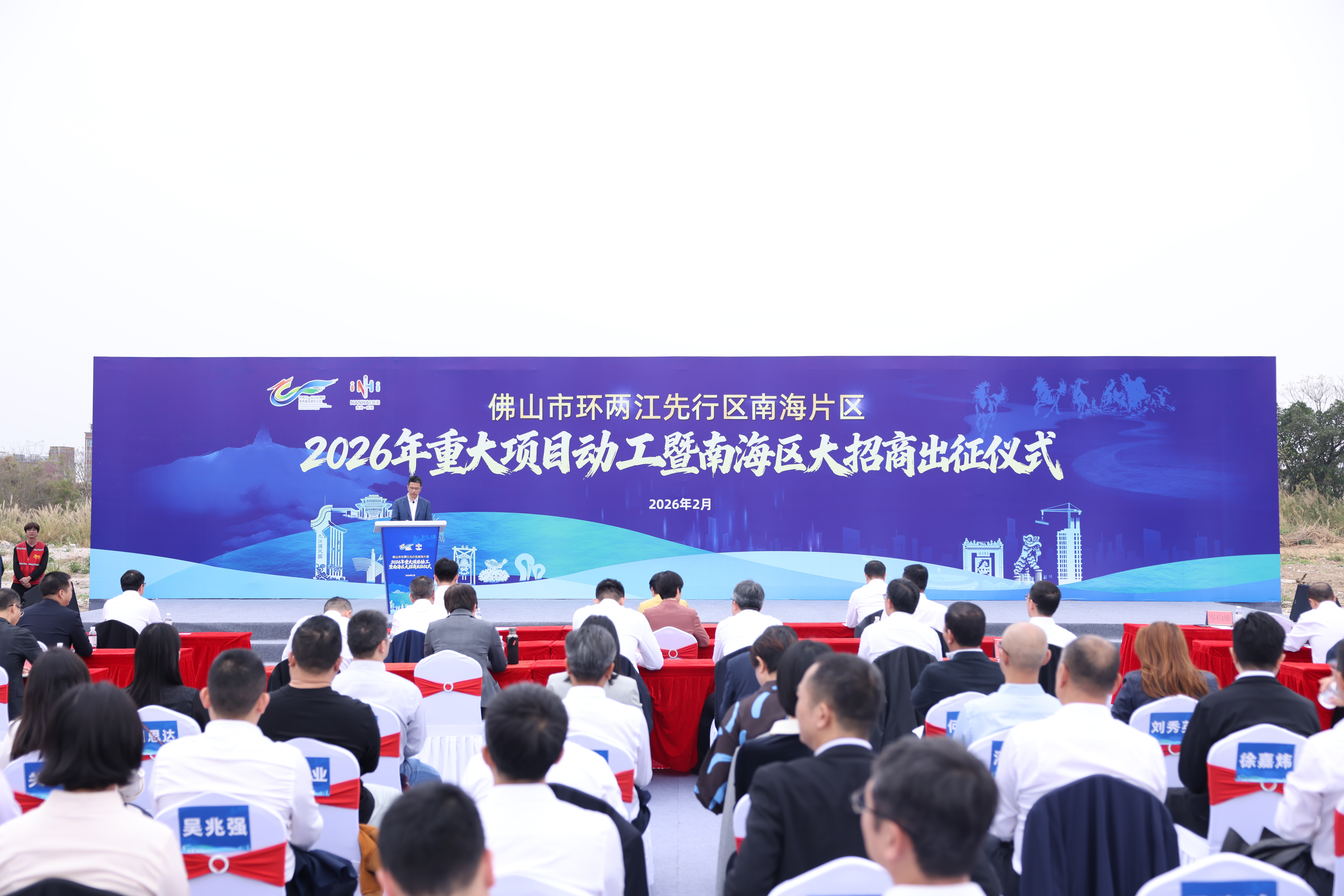人勤春来早,奋进正当时。2月25日上午,佛山市环两江先行区南海片区2026年重大项目动工暨南海区大招商出征仪式在九江镇举行。此次活动是继佛山市新春重大项目动工现场会后,南海区紧随市委、市政府步伐,迅速掀起新一轮高质量发展热潮的重要举措,充分展现了南海区“马年马上干”的奋斗姿态和“再造一个新佛山,南海担当新枢纽”的坚定决心。