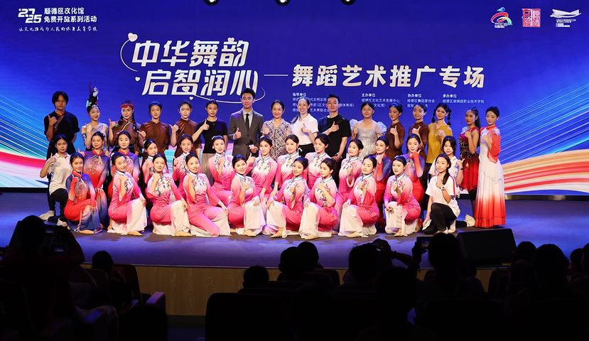 5月17日晚,2025年顺德区文化馆免费开放系列活动在文化馆一层小剧场正式启动。首场活动“中华舞韵 启智润心”舞蹈艺术推广专场以丰富多彩的节目为市民带来一场视听盛宴,吸引了众多观众现场观看,线上直播亦同步开启,让无法到场的市民共享艺术之美。