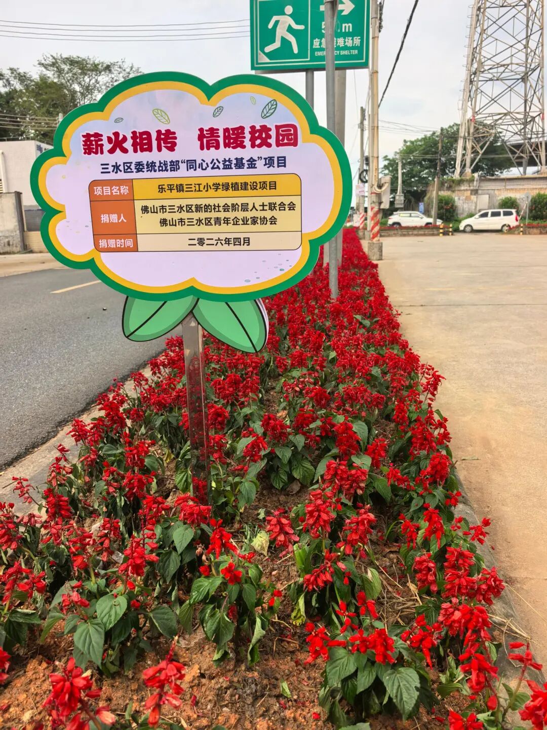 三水区新的社会阶层人士联合会与三水区青年企业家协会,向三江小学联合捐赠一批“一点红”绿植。