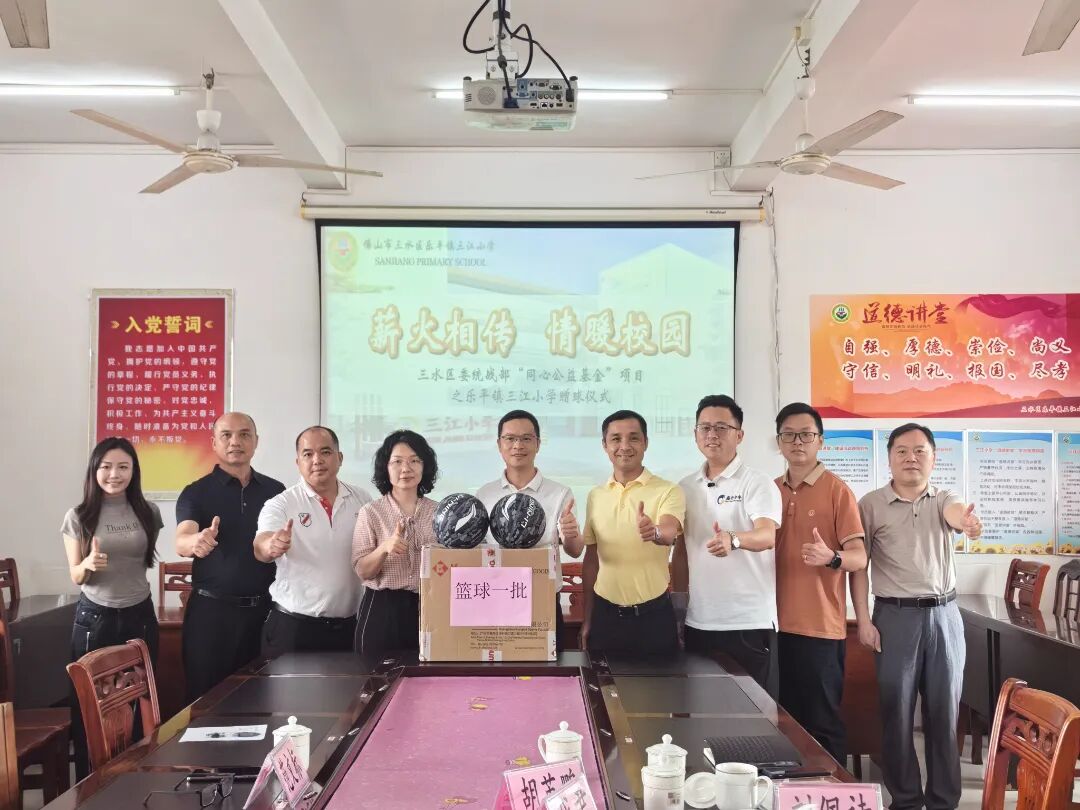 三水区新的社会阶层人士联合会与三水区青年企业家协会,向三江小学联合捐赠一批篮球。