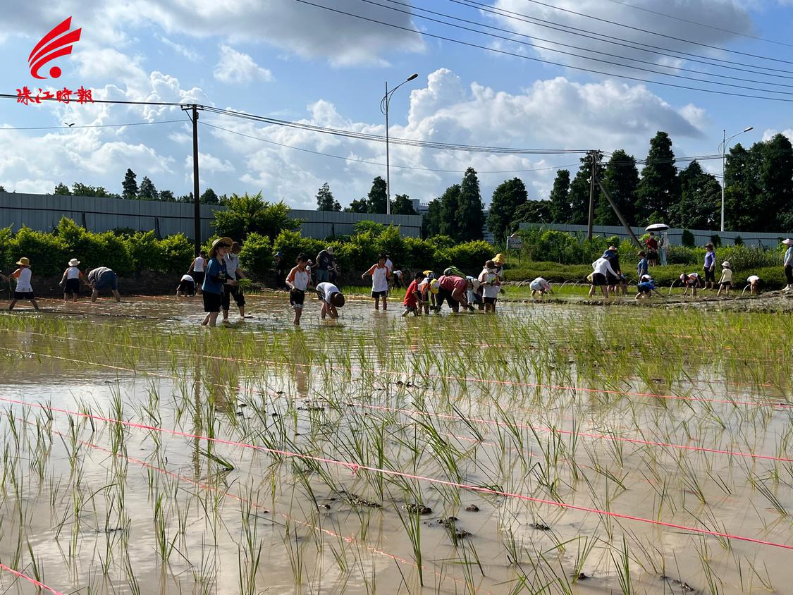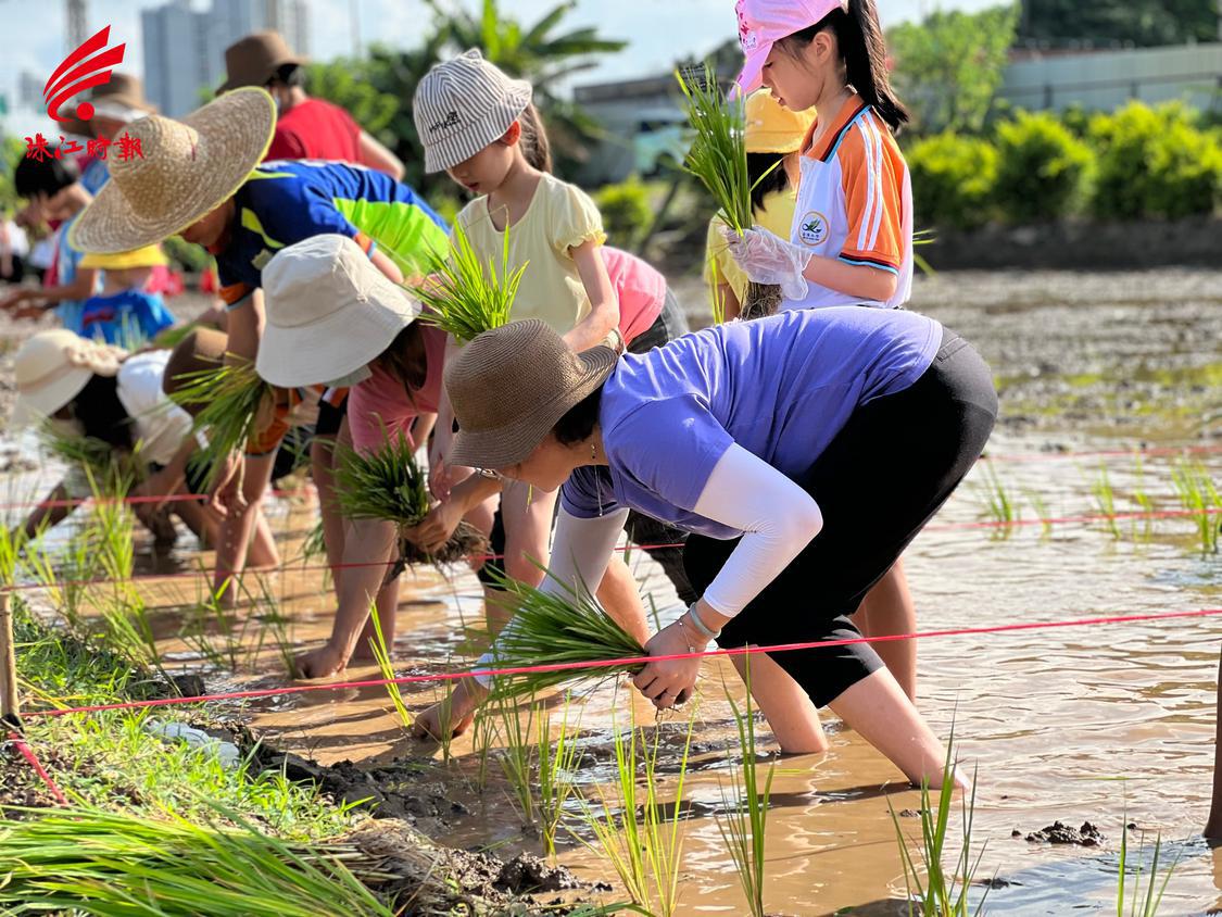 佛山新闻网讯 珠江时报记者区辉成 通讯员何丽娥报道:手把青秧插满田,低头便见水中天。7月16日上午, 南海里水金溪小学组织学生在校外劳动实践基地开展插秧劳动实践活动,让孩子们的劳动教育课程得到切实落实,充实了暑假生活,也进一步培养学生的劳动精神。