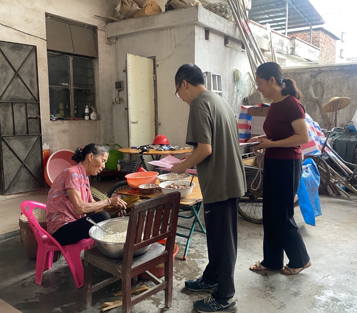 理事会成员进村入户宣讲。冯慧雯摄