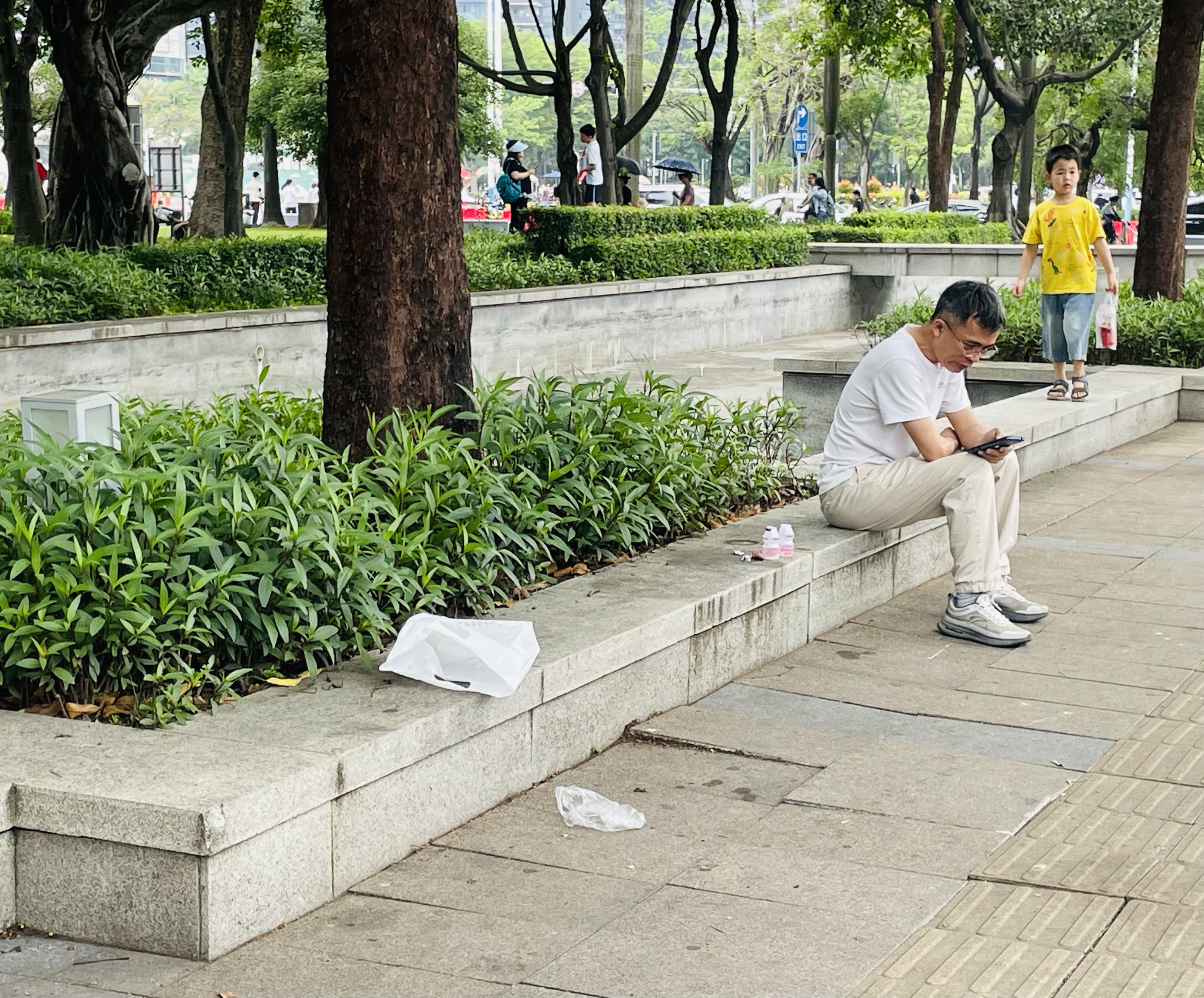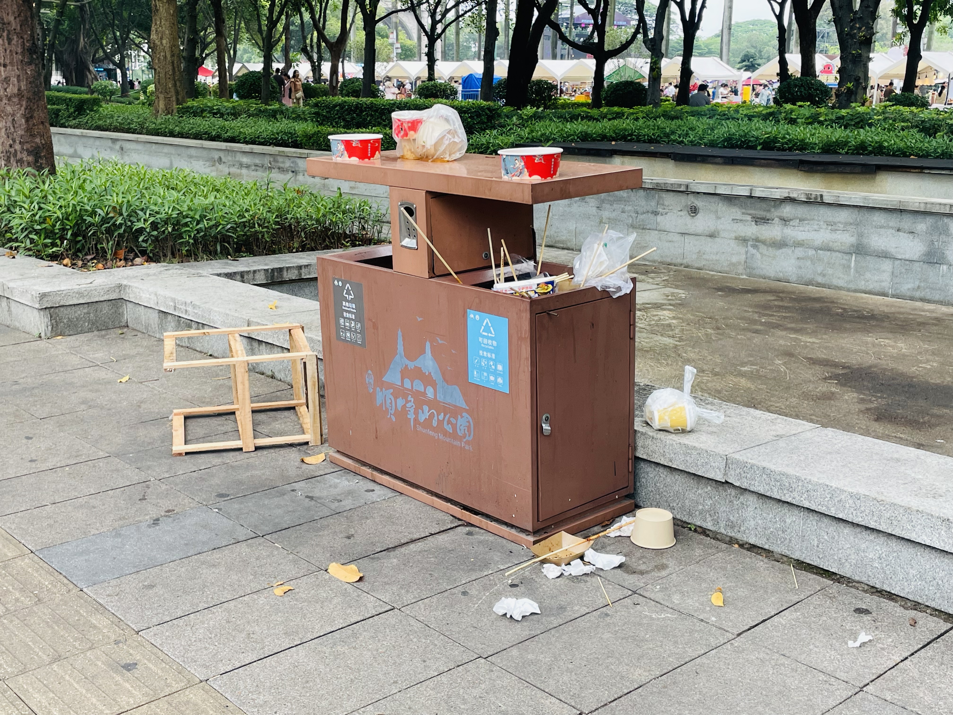 然而,在欢乐祥和的节日氛围中,一些不文明现象却显得格外刺眼。记者走访发现,尽管公园内每隔一小段路程就设有分类垃圾桶,且配有醒目的提示标识,但仍有不少市民游客将食品包装袋、饮料瓶、纸巾等废弃物随意丢弃在草坪、步道和休息区。在美食区附近,也可看到散落的烧烤签、一次性餐具和食物残渣等,不仅破坏了公园的环境卫生,也影响了其他游客的游览体验。