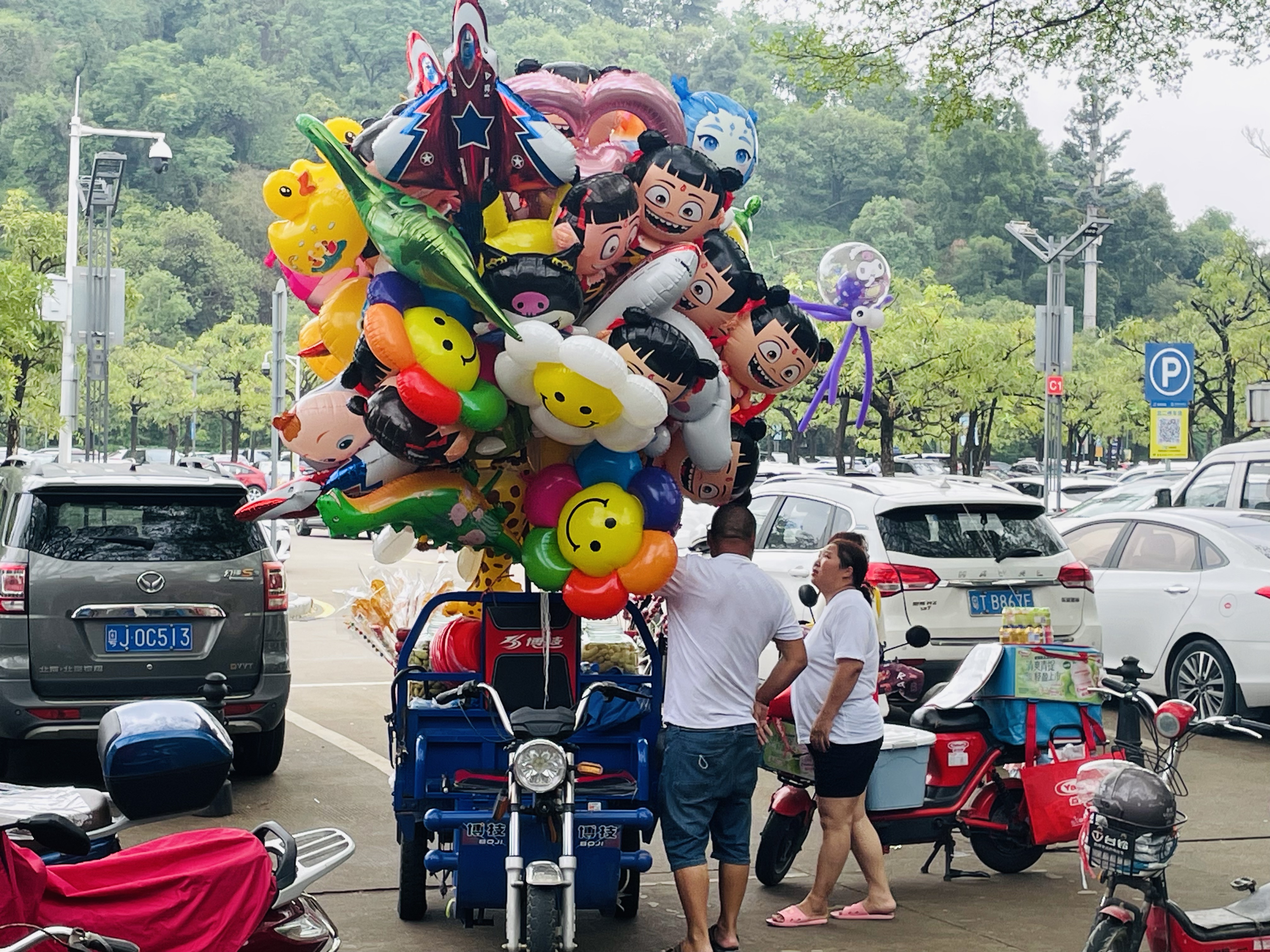 除了乱扔垃圾外,一些流动商贩趁机在公园出入口和主要通道摆摊设点,现场售卖气球、腌制水果等“三无”商品,严重影响了公园的秩序与环境。这些无证经营的摊贩不仅占据公共空间,堵塞游客通行要道,其售卖的商品劣质气球易爆裂存在安全隐患,露天摆放的腌制水果更易滋生细菌。尽管工作人员多次劝离,但因违法成本低、执法力量有限,导致公园内流动摊贩“你来我走、你走我来”的现象屡禁不止。