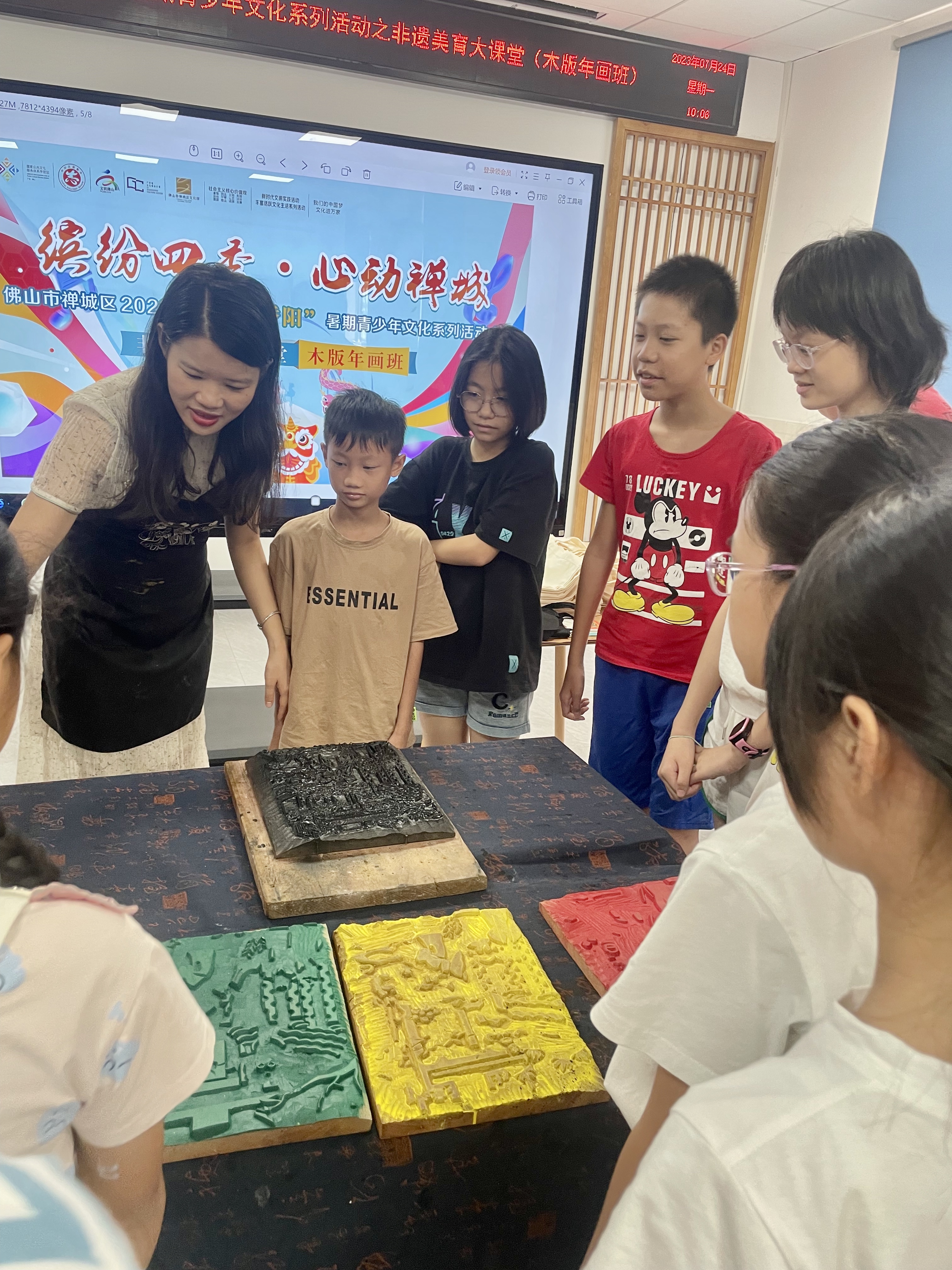 每期的公众开放日,她都会策划一个新鲜有趣又充满温情的主题,并与木版年画制作巧妙结合起来。每一次外出宣讲,面对各种各样的受众,她总是可以轻而易举地抓住他们的需求,用人们愿意听的语言去传播佛山木版年画的美好。
