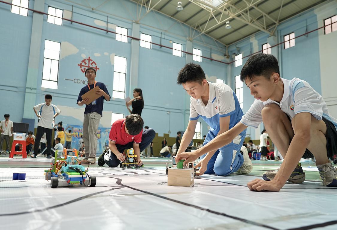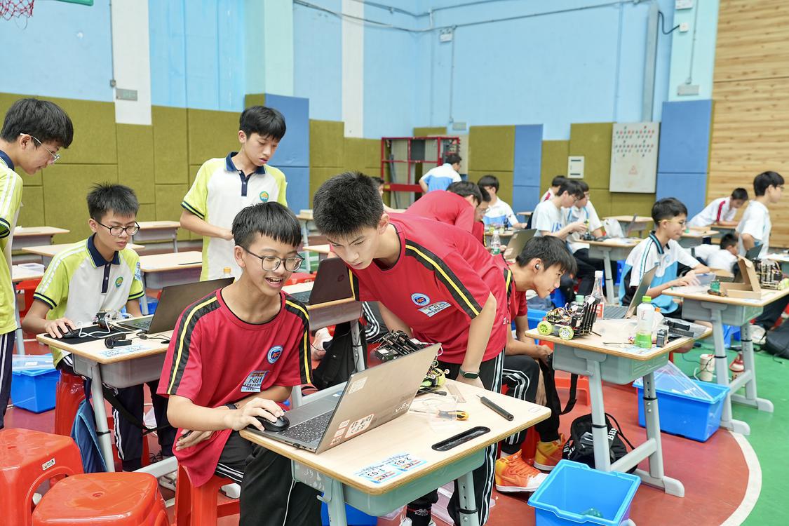 南海区灯湖中学初二学生阮永轩第一次参加机器人竞赛,在赛前调试阶段遇到了难题。他们发现地图有些褶皱,让传感器无法精准识别,导致设定好的程序没办法正常运行。于是,阮永轩和队友短暂讨论后,决定改变机器人的形状,整体提高车辆底盘的高度。“这次比赛不仅提高了我的随机应变能力和创客技术,也让我对机器人和人工智能领域的内容更加感兴趣。”阮永轩说,他以后会积极参加科技竞赛活动,探索科学的奥秘。
