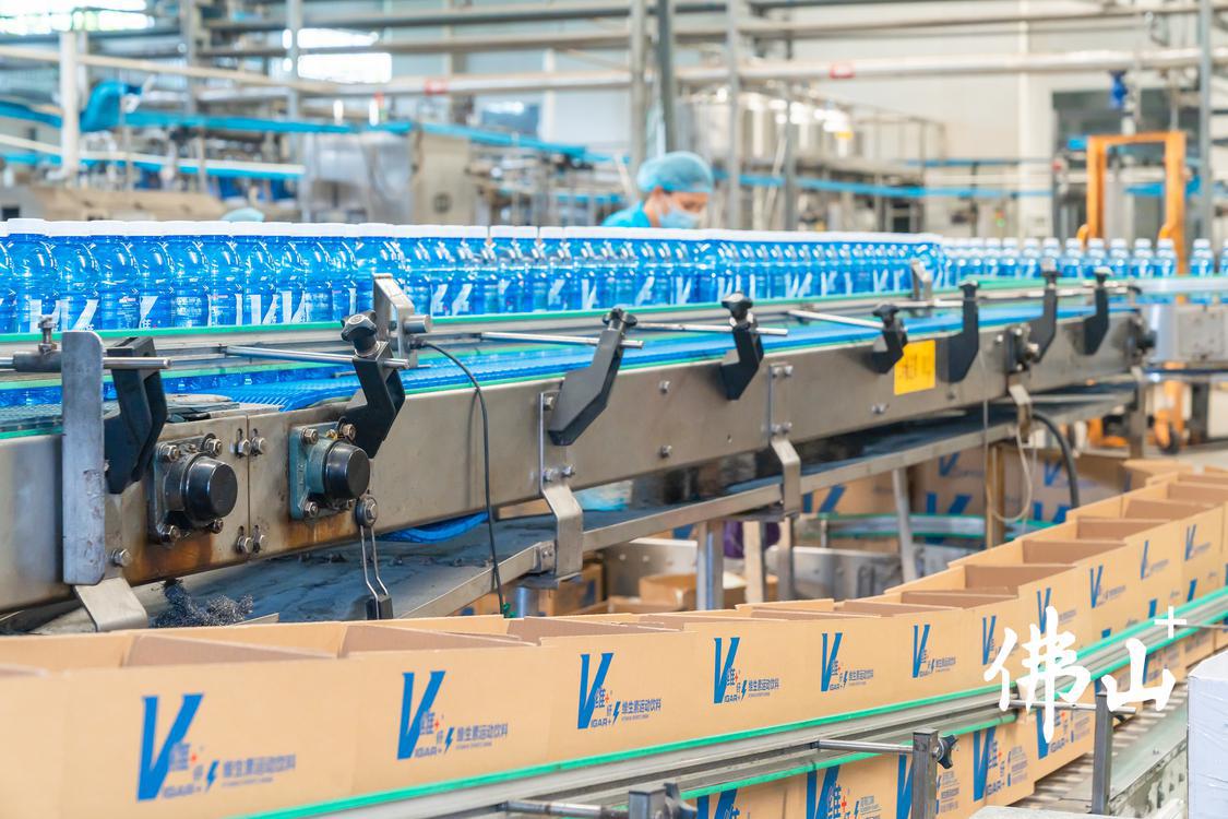 佛山市三水区隐雪食品有限公司包装车间内,维生素运动饮料正在打包。图/佛山市新闻传媒中心记者王澍摄