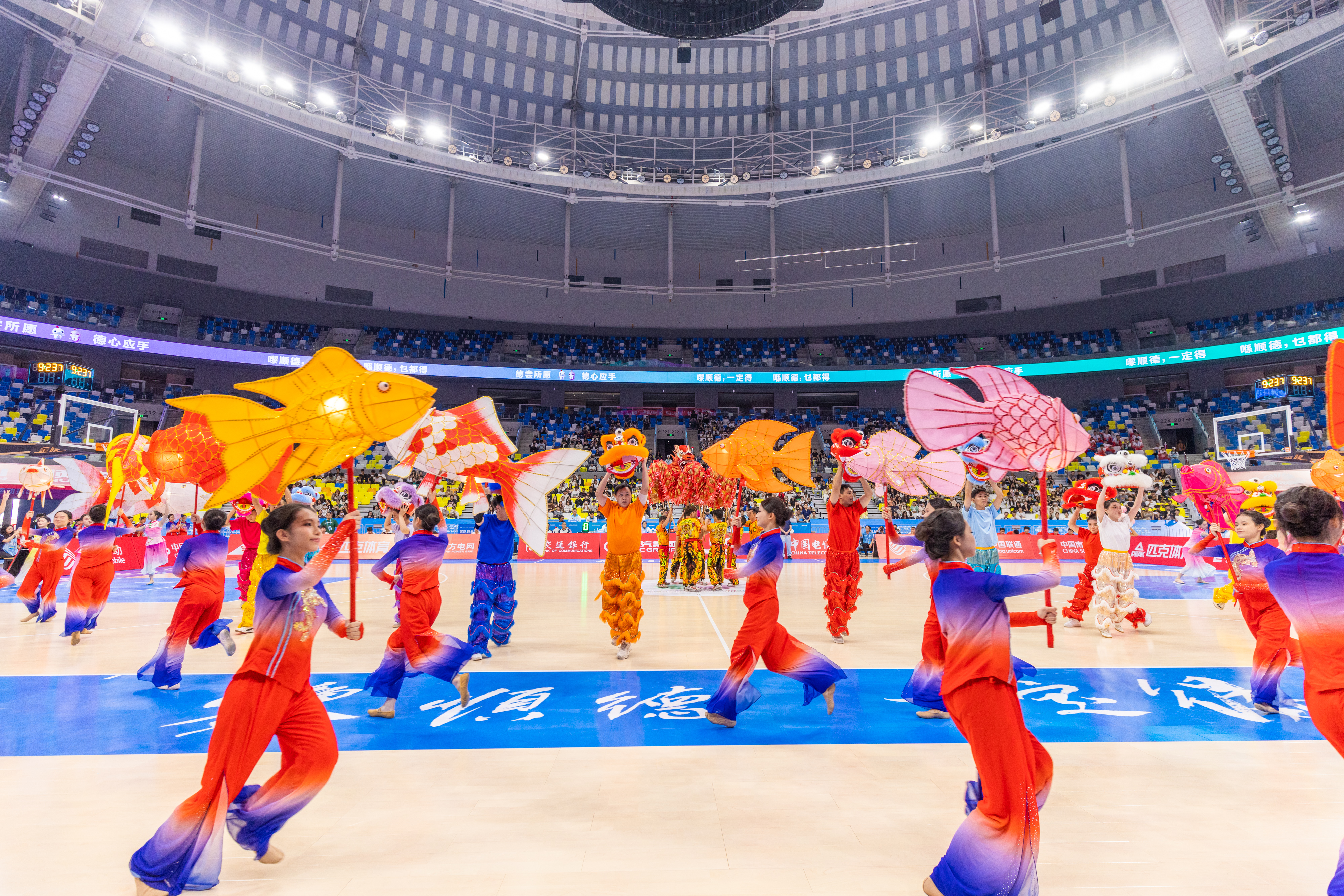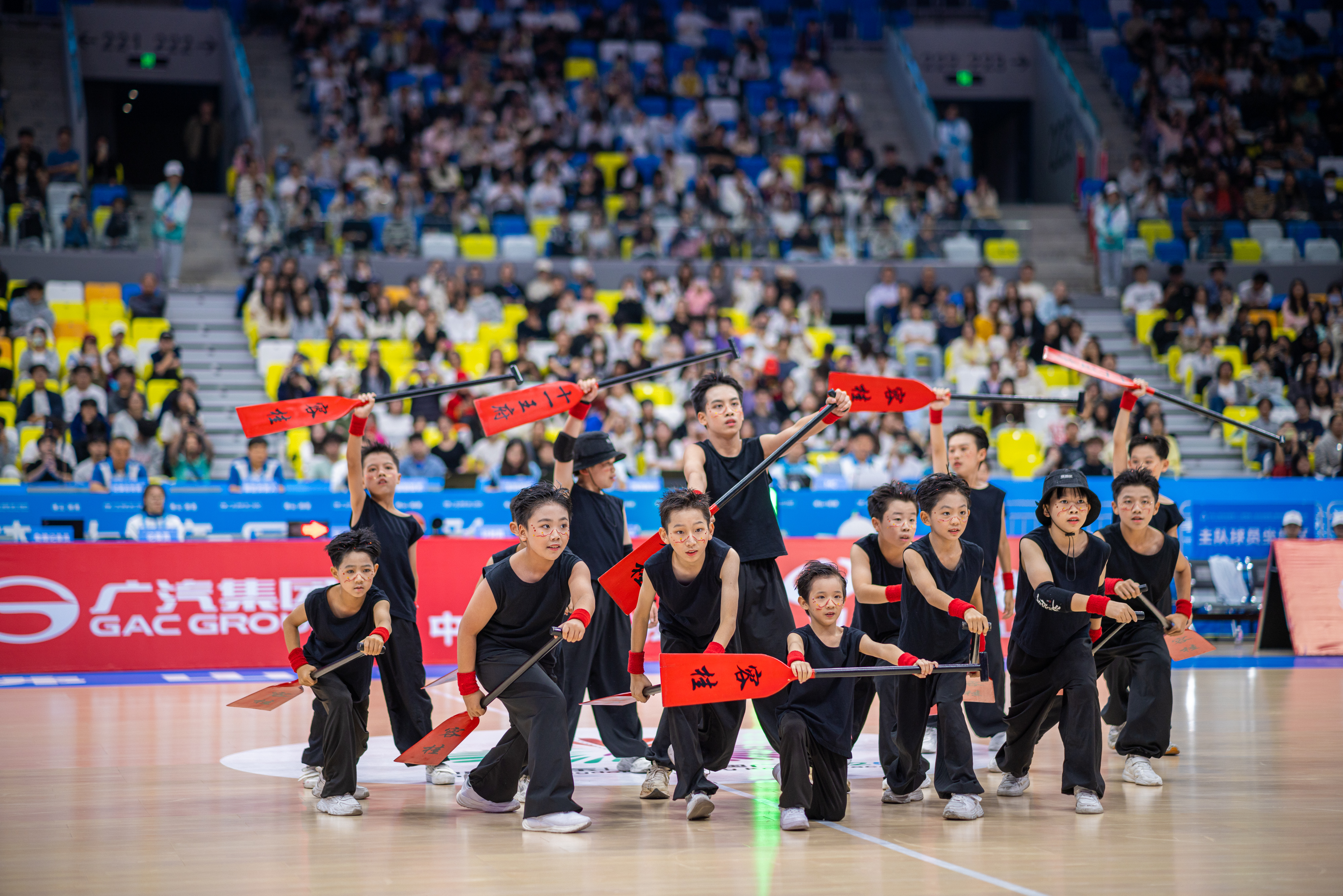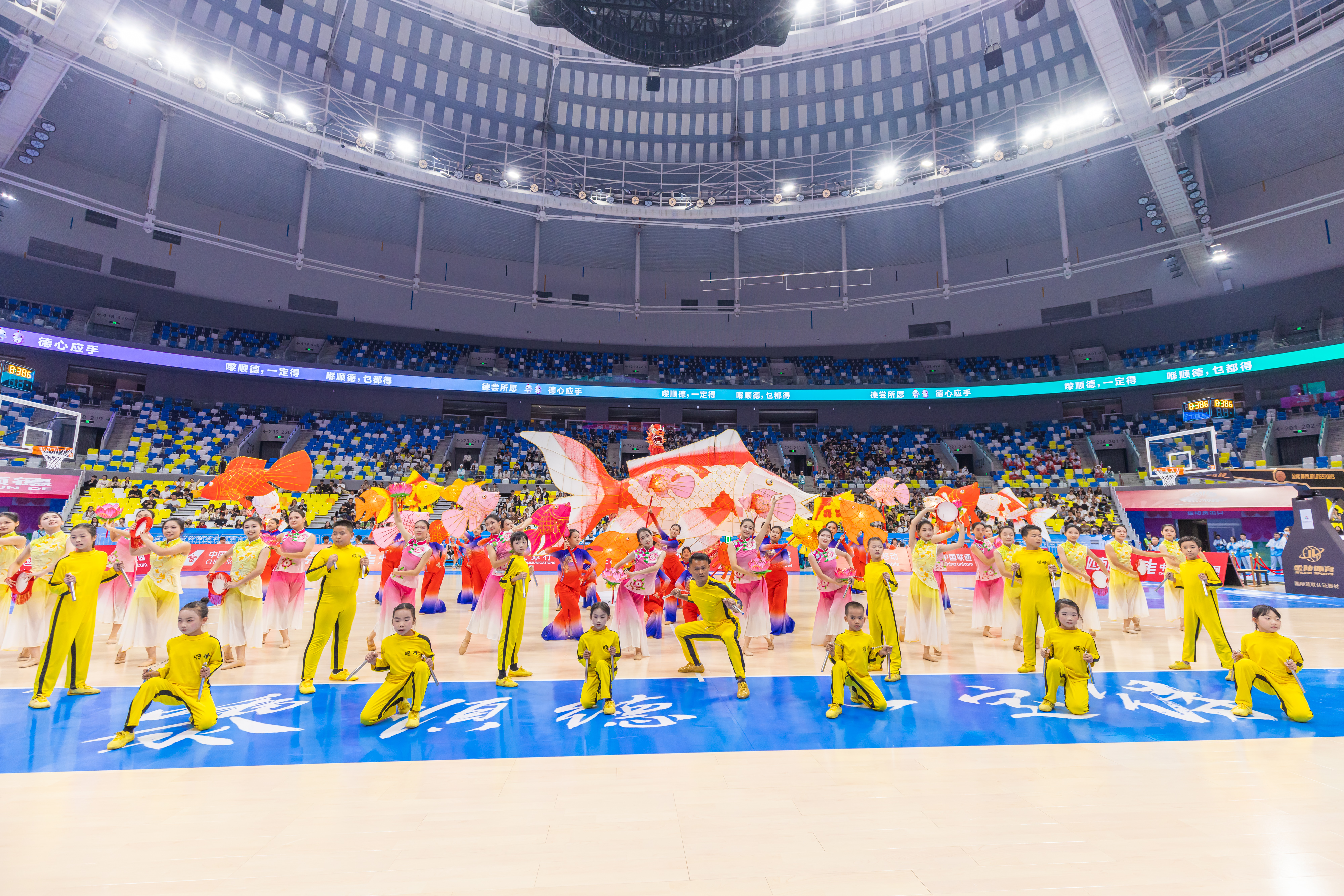 鱼灯摇曳生姿,舞龙灵动盘旋,身着黄色李小龙运动服的小朋友利落舞动双节棍,色彩斑斓的狮头与雅致莲花灯错落其间……一场独具匠心的《狮舞岭南 风生水起》表演为赛事拉开序幕。