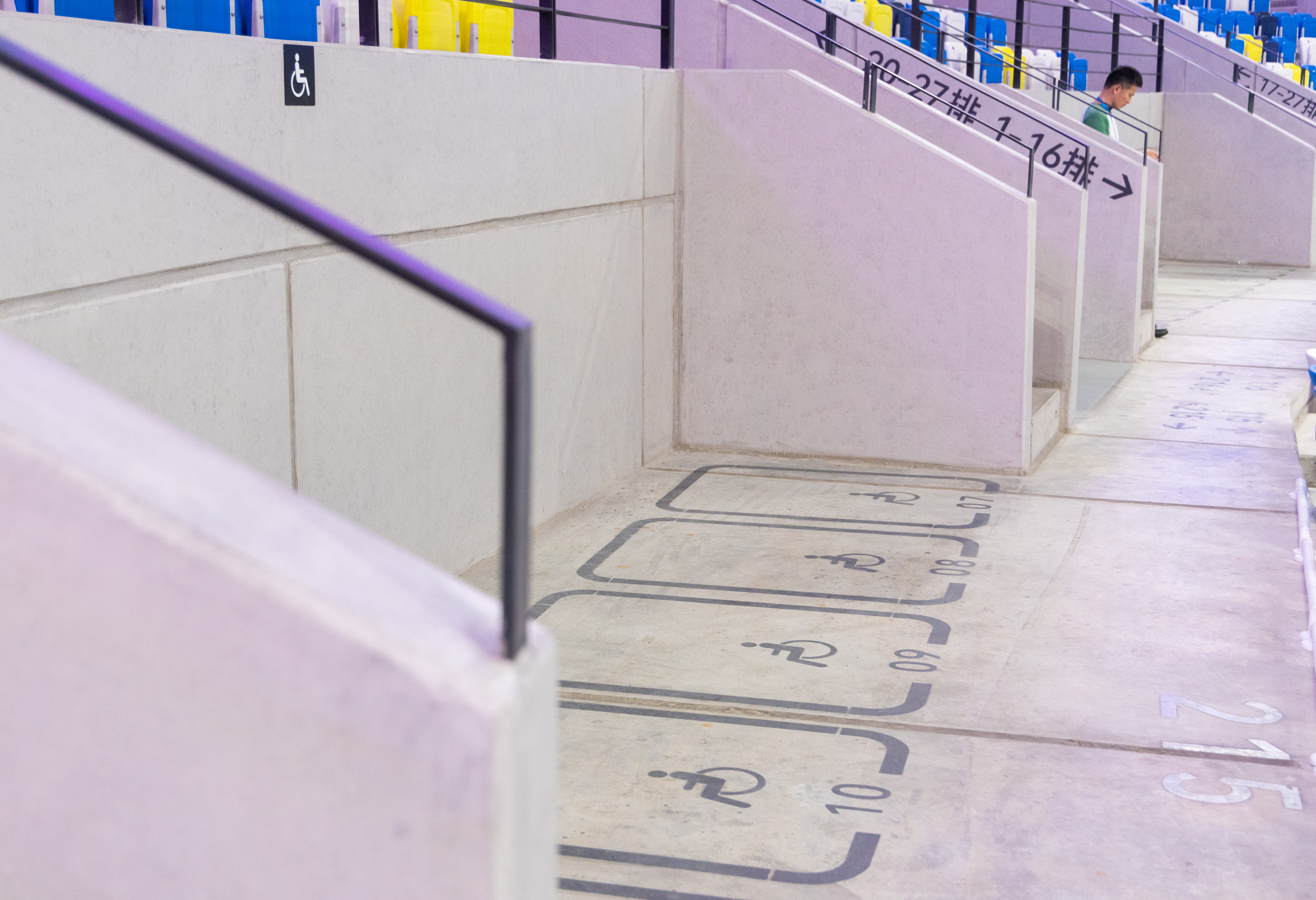 除了为参赛运动员提供的暖心服务,赛事场馆还充分兼顾特殊观众的无障碍观赛需求,不仅规划了轮椅通道、盲道等基础通行设施,还专门设置了24个无障碍观赛座位以及10余个无障碍洗手间,以完善的配套设施保障特殊群体的观赛体验。