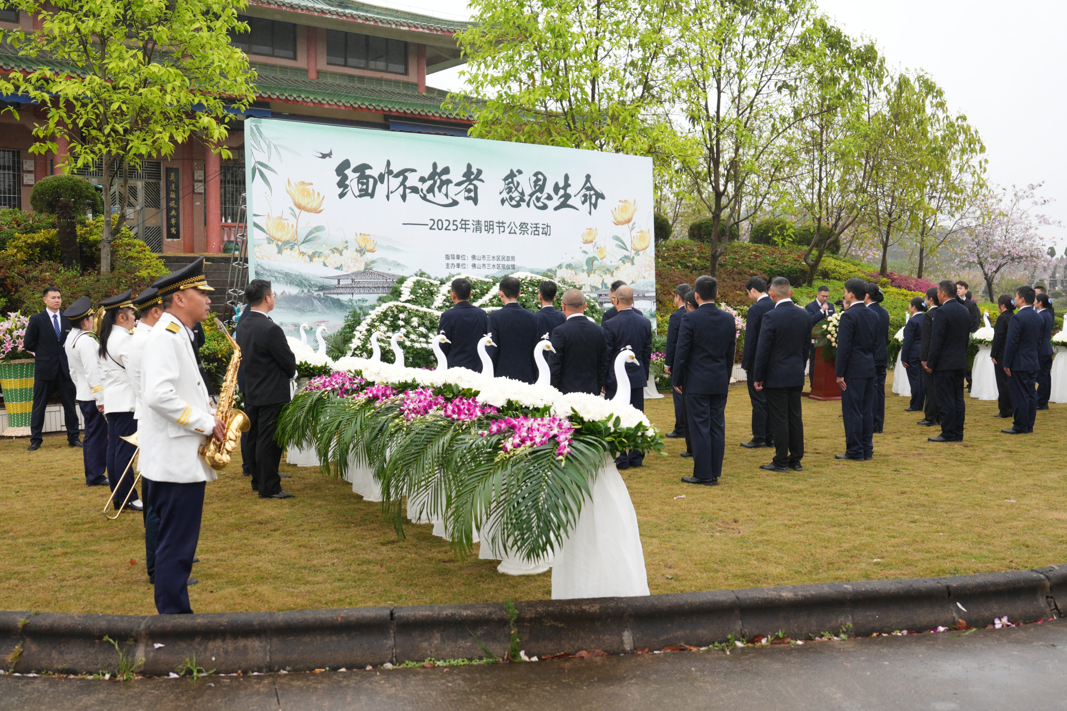 上午9时30分,伴着轻柔舒缓的音乐,公祭活动正式开始。三水区殡仪馆的礼仪人员敬献鲜花,行鞠躬礼,向先贤致以思念之情。