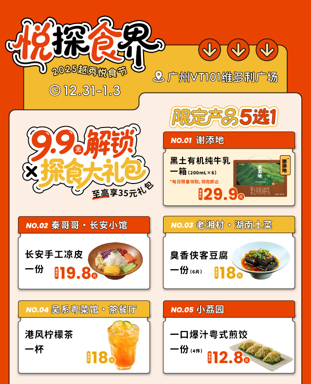2025年12月20日,越秀商管在延续往期多次活动成功经验、沉淀百万级会员基础的前提下,正式启幕以“悦探食界”为主题的越秀商管悦食节。本届悦食节以“美食为核、多业联动、文化赋能”为理念,创新打造“美食+”多元消费融合场景,于12月20日至2026年1月4日陆续落地广州、佛山、武汉、西安等城市核心商圈,覆盖越秀商管旗下近20座商业体,为各地市民呈上一场集美食品鉴、潮流社交、文化体验、购物狂欢于一体的沉浸式跨年狂欢盛宴,持续点燃冬日消费热情。