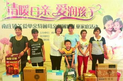 圆了愿望的部分特困母亲、困境儿童与嘉宾们(左三、右三)合影。珠江时报讯(记者/刘玉超 通讯员/关结玲 关连霞 摄影报道) 前天,禅城区南庄镇妇联开展“情暖母亲·爱润孩子”主题活动,向辖区43名单亲特困母亲和30名困境儿童共发放6万多元善款。