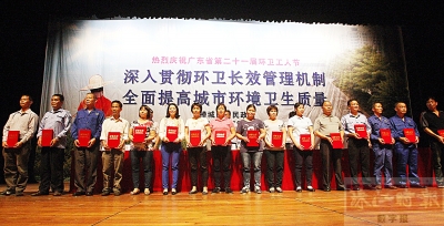 10月26日是全省第21个环卫工人节,10月24日,禅城区在琼花大剧院举行庆祝大会,为全区的环卫工人们庆祝节日,并表彰优秀环卫工人。禅城区副区长卢志华、禅城区环境保护和城市管理局常务副局长梁志林及近千名环卫工人代表参加了庆祝大会。
