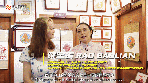 佛山剪纸属于南派剪纸,有刻纸、铜凿、铜写料、铜衬等多种类型,因此也在世界上被誉为剪纸届的“黑牡丹” 。一走进饶宝莲老师的剪纸工作室,Lisa不禁被琳琅满目、造型生动的剪纸作品深深吸引住,忍不住称赞:“太美了!”